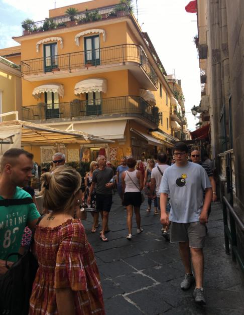 Sorrento is a small, quaint, and relaxed town in Campania, Southern Italy. Here you will have time to explore the town and walk along the narrow streets that lead to many homes, restaurants, family-owned shops, taverns, villas, hotels and, most importantly, unforgettable scenery. Overlooking the Bay of Naples, the waterfront is captivating and relaxing. This town is an extremely popular tourist attraction that has a lot to offer, from delicious food to wonderful views. Sorrento is full of intriguing architecture, churches, leather factories, limoncello factories and inlaid woodwork shops. From here you will stop to enjoy some of the finest culinary spots Sorrento has to offer. You will have a wide variety of food to choose from such as meat, fish and true Neapolitan pizza cooked in an ethnic brick oven, along with salads, seafood, vegetables, desserts, wine and various drinks.